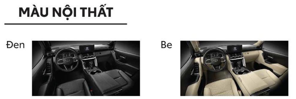 Toyota Land Cruiser nhập khẩu chính hãng được bọc da màu be, kết hợp các chi tiết gỗ ở bệ trung tâm và cửa xe. Trên vô-lăng tích hợp các phím bấm như đàm thoại rảnh tay, ga tự động thích ứng, hỗ trợ giữ làn,... Đồng hồ sau vô-lăng là loại analog kết hợp màn hình kỹ thuật số.